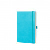 A5 notebook with rounded edges, elastic band, pen holder and pocket on the inside cover
