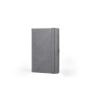 A5 notebook with rounded edges, colored book block edge matching color with cover, elastic band, pen holder and pocket on the inside cover