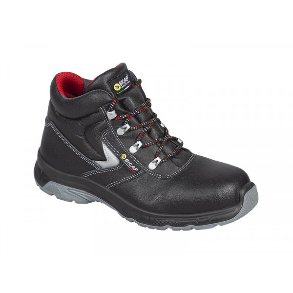 High-cut work shoe, S3 SRC Upper shoe part: Waterproof printed leather Lining: AIRNET SPACER Toe Cap: composite, ITSAFE Midplate: no-metallic FLEX TEXTILE PLATE Sole: double density Polyurethane Fussbett: TOP BASIC