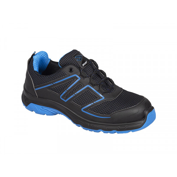 Low-cut work shoe, S1P SRC Upper shoe part: waterproof and breathable high quality microfiber + rubber effect HF + breathable nylon Lining: AIRNET SAPACER Toe-cap: composite, ITSAFE Midplate: no-metallic FLEX TEXTILE PLATE Sole: double density Polyurethane Fussbett: COMFORT FRESH