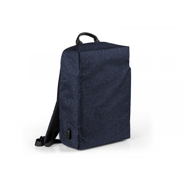 Anti-theft backpack with one main compartment, padded compartment for 15´ laptop and tablet compartment, USB connector, secret pocket with zipper on the back and two pockets on the sides