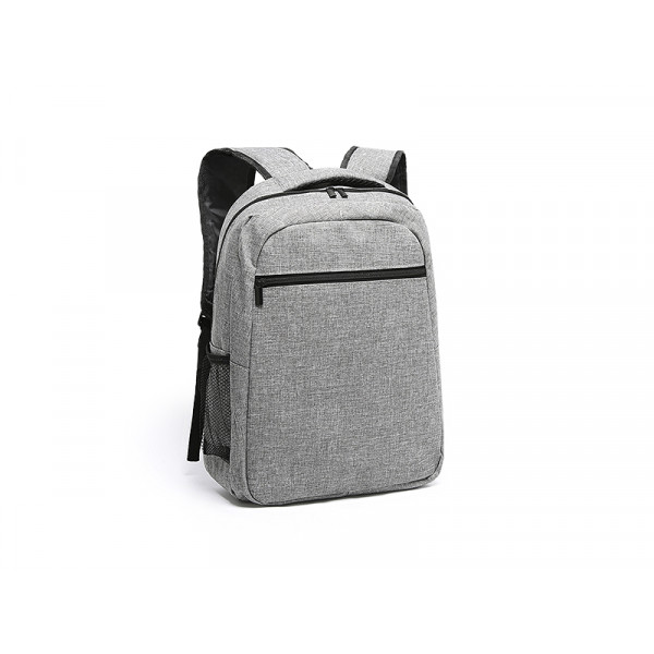 Backpack with one main compartment and front pocket with zipper, pocket for 15" laptop and mesh side pocket